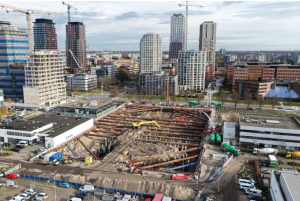 Ondertussen zijn ook de eerste grote betonstorten uitgevoerd, waaronder de fundering van het gebouw Parkside en de bases van beide bouwkranen. In de komende periode worden de keldervloeren per deel gestort en dezelfde dag nog strak en glad afgewerkt. Daarna start de opbouw van de kelder met wanden, kolommen en vloerconstructies.